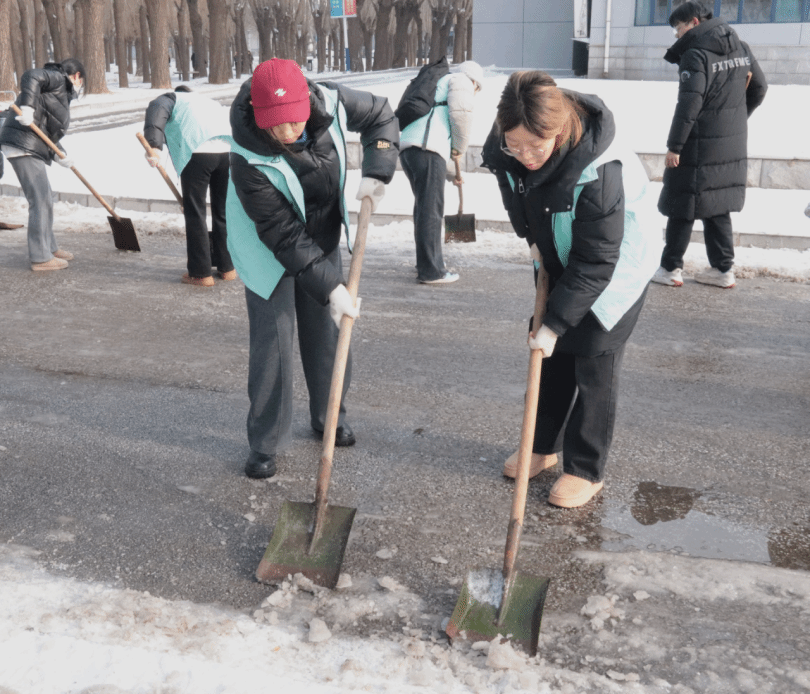 为积极响应学校铲雪除冰工作部署,切实保障师生出行安全,12月24日,公共卫生学院组织24级、25级学生志愿者,在康复楼门前开展铲雪志愿服务活动。