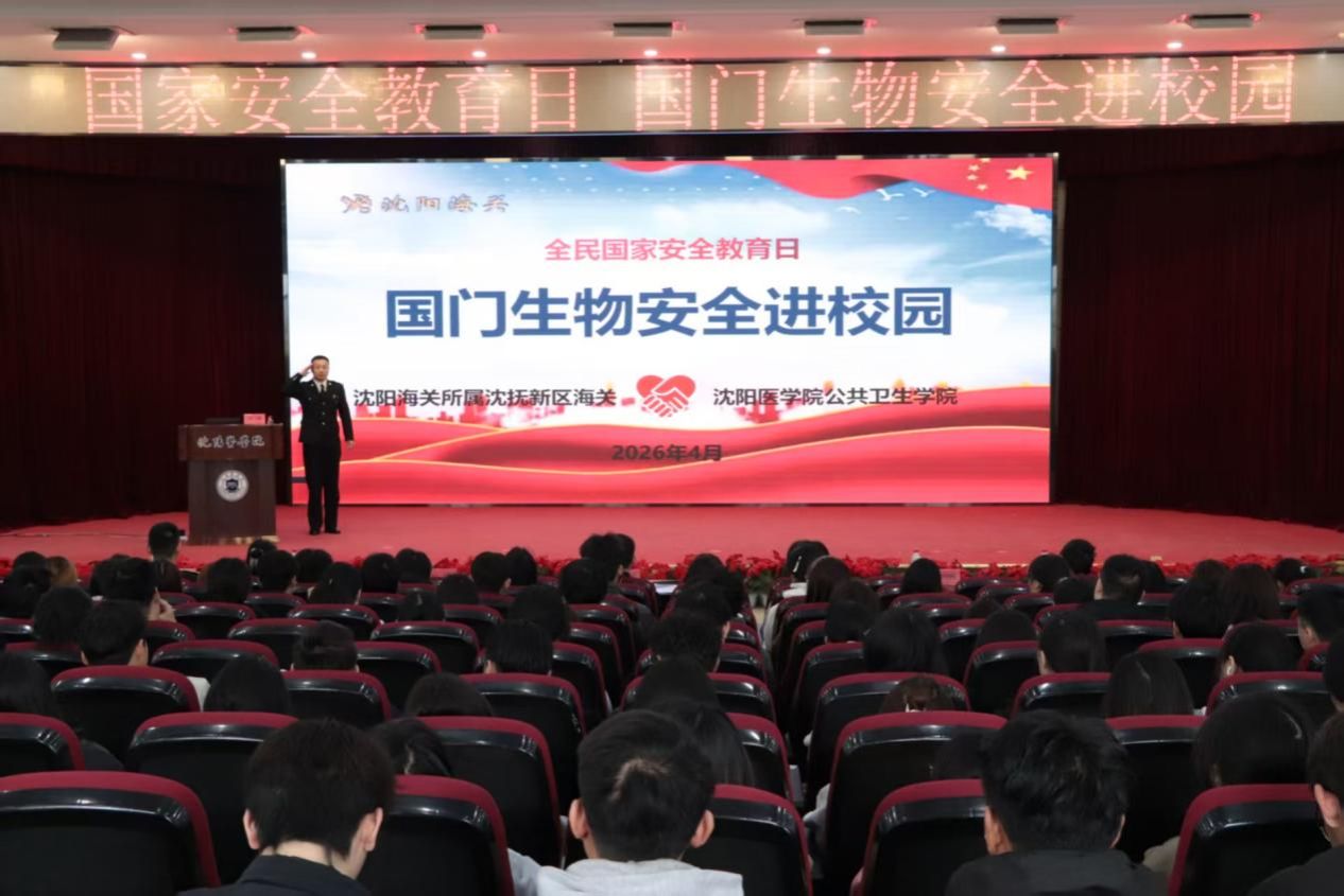 在第十一个全民国家安全教育日到来之际,深入贯彻“统筹发展与安全,护航‘十五五’新征程”主题,2026年4月10日,沈阳医学院公共卫生学院联合沈阳海关所属沈抚新区海关,在图书馆第一学术报告厅成功举办国家安全教育进校园学术报告活动。学院师生齐聚一堂,共同学习国门生物安全知识,强化国家安全意识。